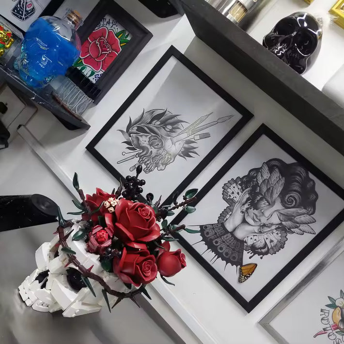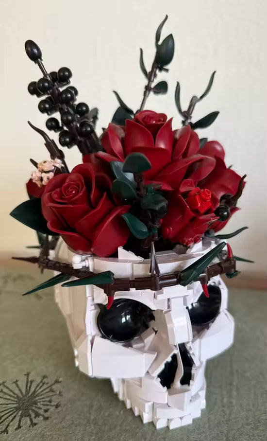 Goth Bloom is a striking gothic brick-built skull adorned with deep red roses, blending dark aesthetics with intricate design. Crafted as a collectible display piece, it’s perfect for adding a bold, artistic edge to any space. A unique build made for goth lovers, collectors, and anyone drawn to dark floral art.